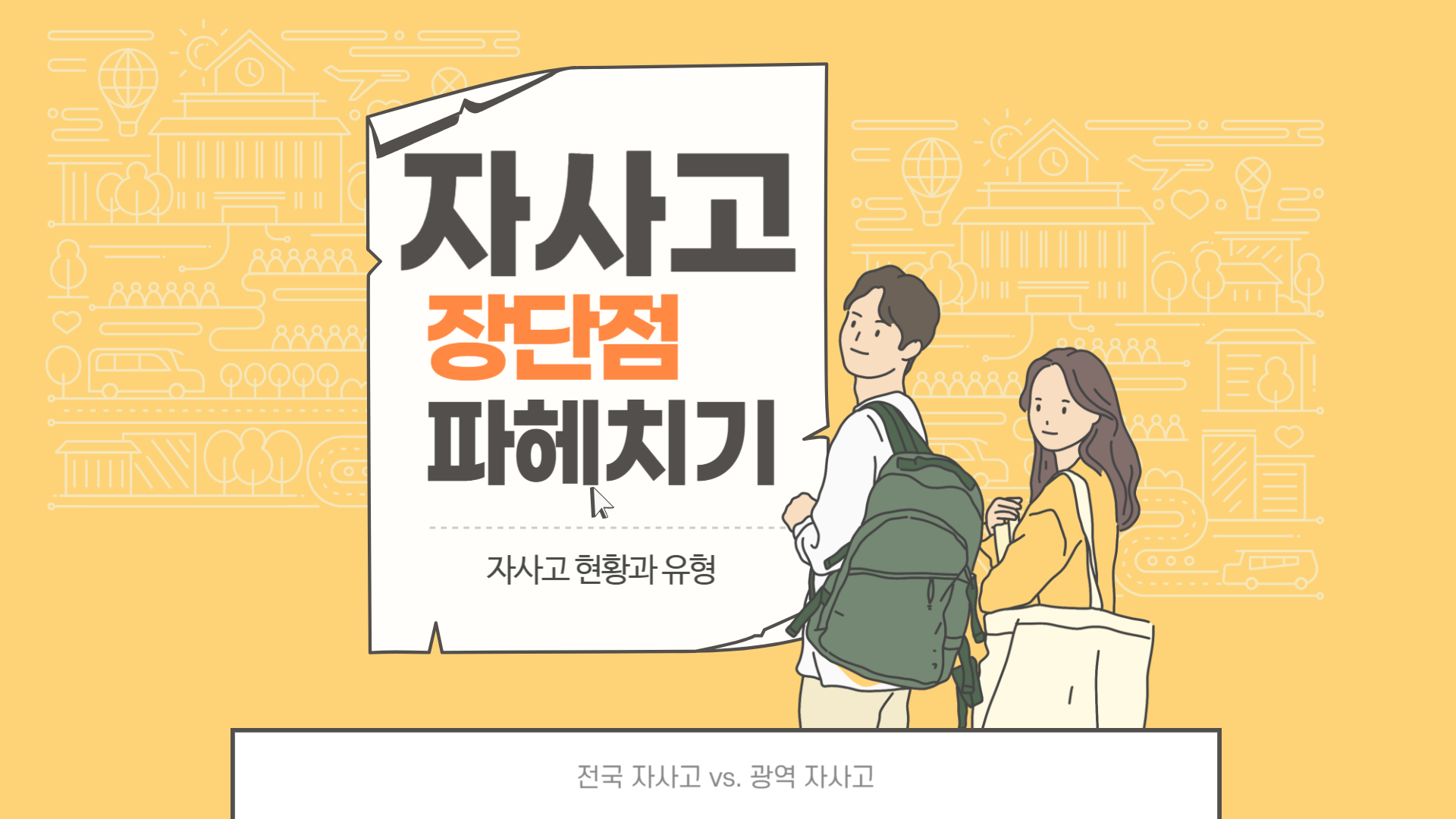 자율형 사립고는 2002년에 처음 도입되어 2011년에 현재의 형태로 전환되었으며, 현재 전국적으로 약 35개의 자사고가 운영되고 있습니다. 일반 고등학교와 달리 자율형 사립 고등학교는 자체 학생 선발권을 가지고 있어, 보통 서류 평가와 면접을 통해 학생을 선발할 수 있는 권한이 있습니다. 또한 교육과정 운영에 있어서도 상당한 자율성을 가지고 있어, 학교의 비전에 맞는 특색 있는 프로그램을 운영할 수 있습니다. 자사고는 크게 아래 두 유형으로 나눌 수 있습니다.