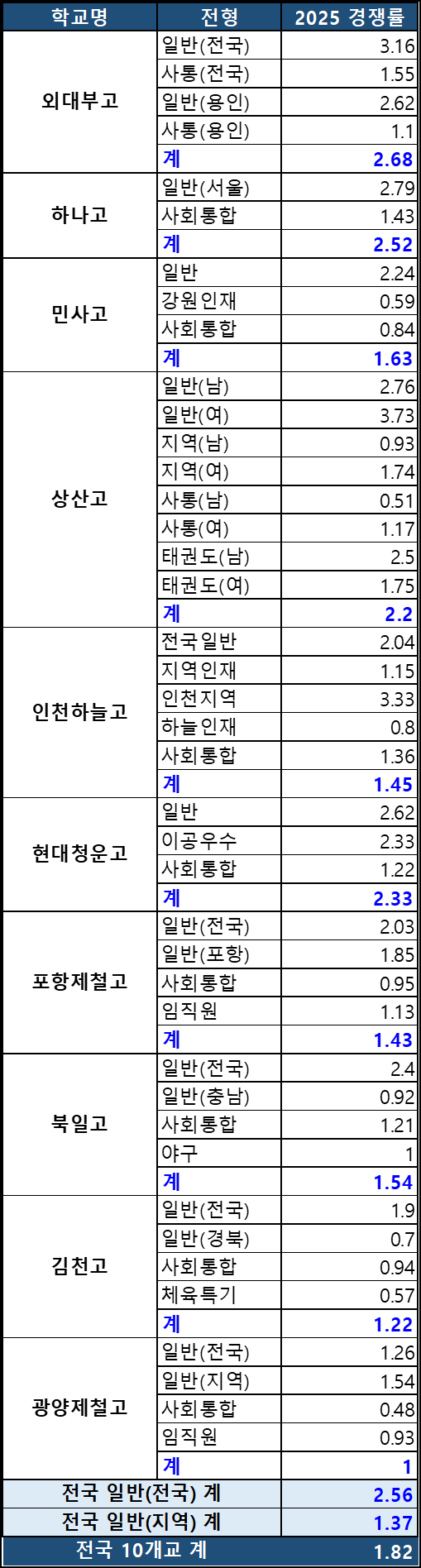 2025학년도 전국 자율형 사립고(자사고) 입시 결과가 발표되면서 교육계의 이목이 집중되고 있습니다. 이번 자사고 입시는 2028학년도 대입 개편안의 영향을 받는 첫 해라는 점에서 특별한 의미를 지닙니다. 내신 등급제가 9등급에서 5등급으로 변경되고 고교학점제가 시작되는 등 대입 제도의 큰 변화를 앞두고 있어, 많은 학생과 학부모들이 자사고 진학에 대해 고민했을 것으로 보입니다. 이러한 배경 속에서 2025학년도 전국 자사고의 경쟁률은 어떤 양상을 보였을까요? 전반적인 경쟁률 추이와 주요 학교별 특징, 그리고 이러한 결과가 시사하는 바를 자세히 살펴보겠습니다.